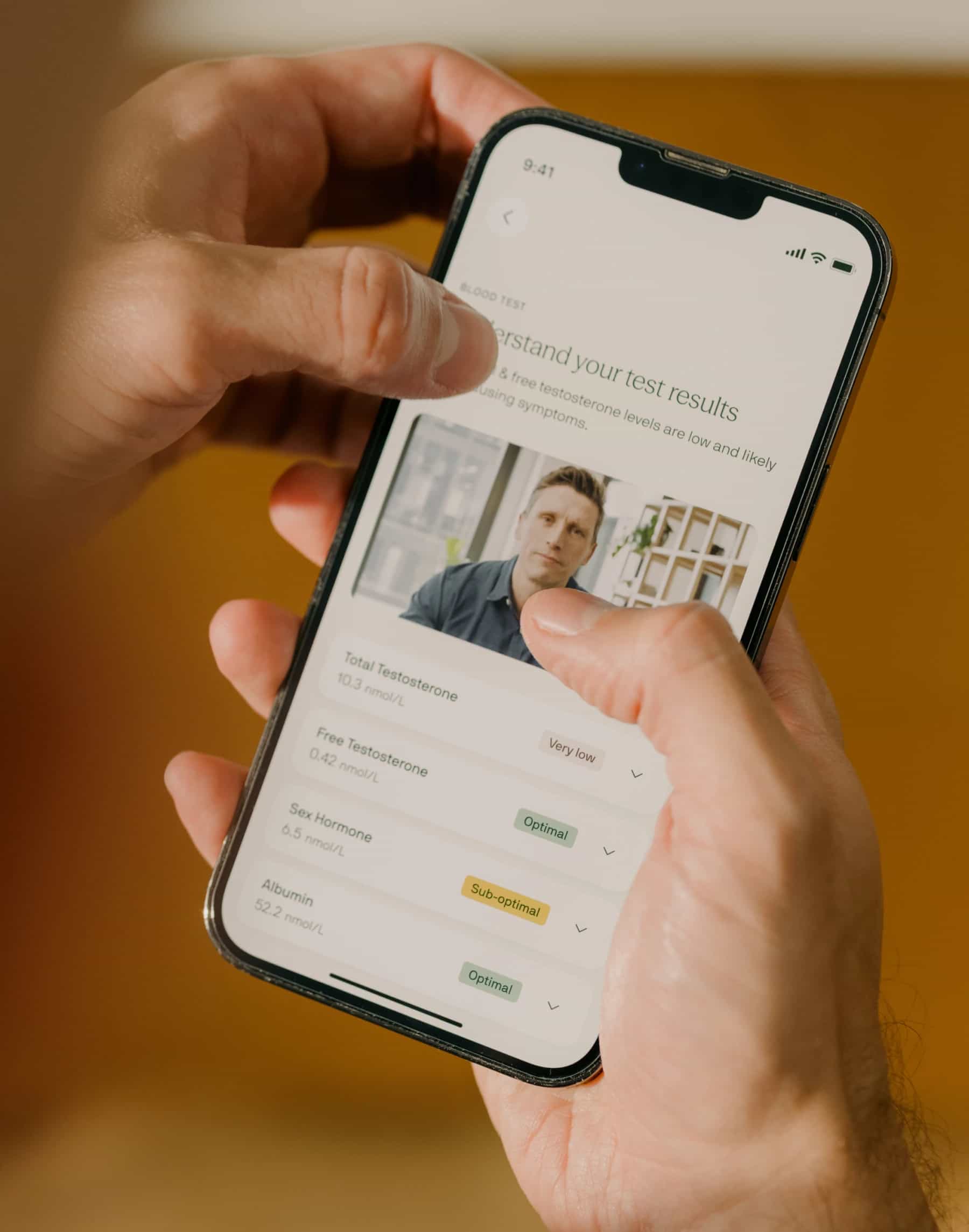 Our initial at-home, finger-prick blood test measures 4 biomarkers including your total and free testosterone levels. You can access your results via your VOY account.